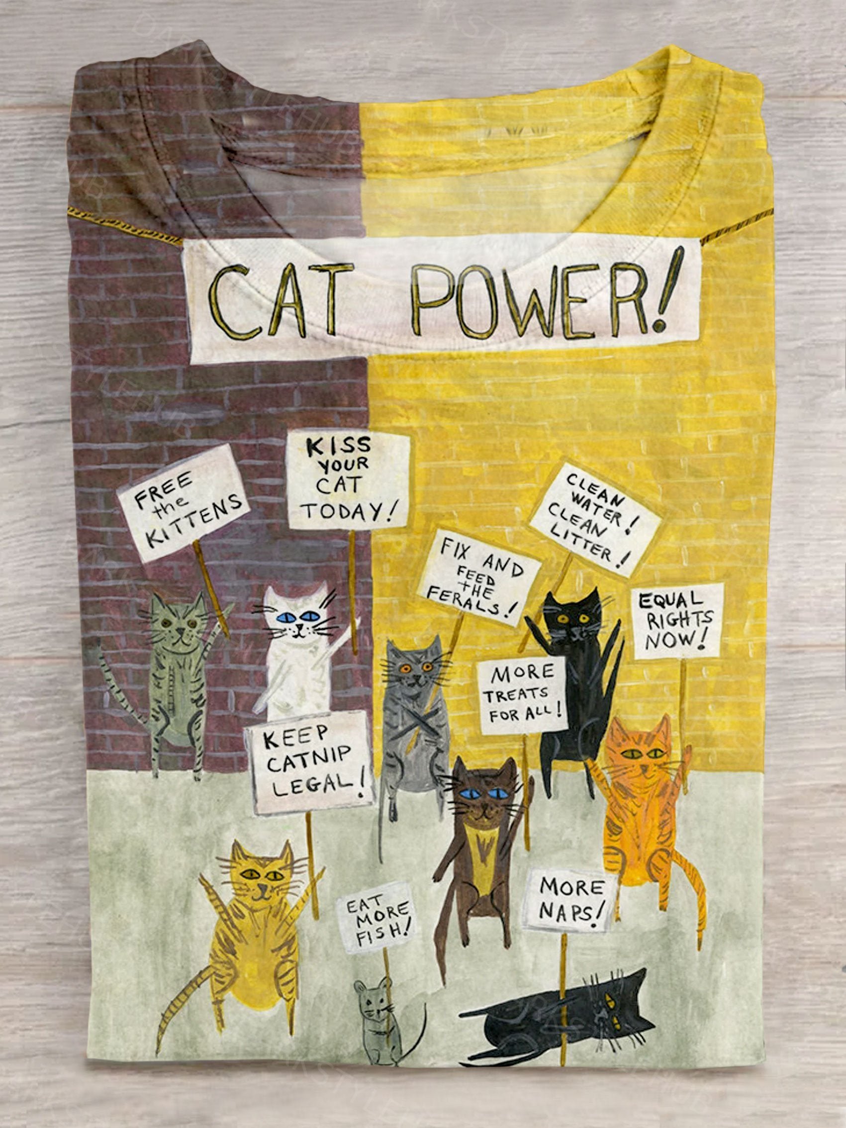 Cat Power Art Print Casual Short Sleeve T-shirt