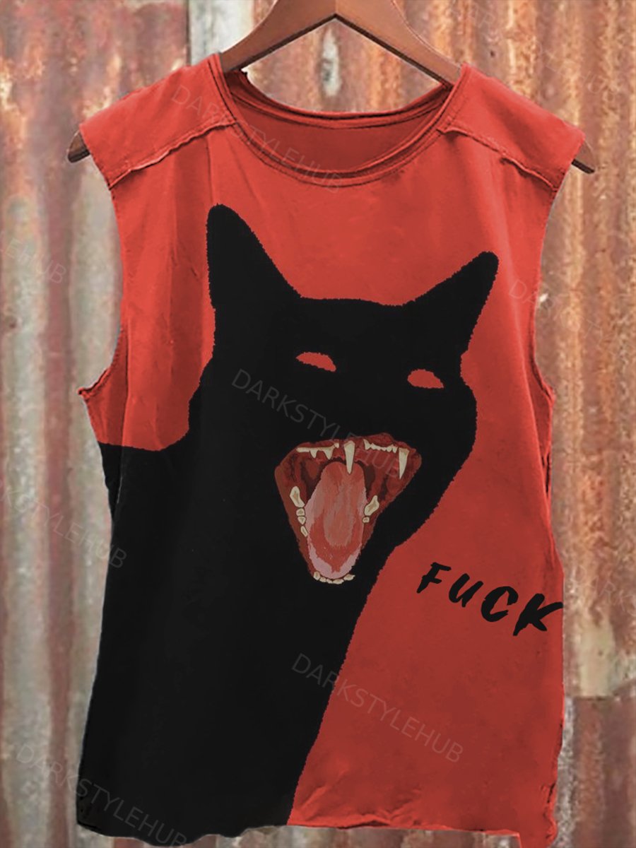 Unisex A Cat Yelling Fuck Print Casual Tank Top