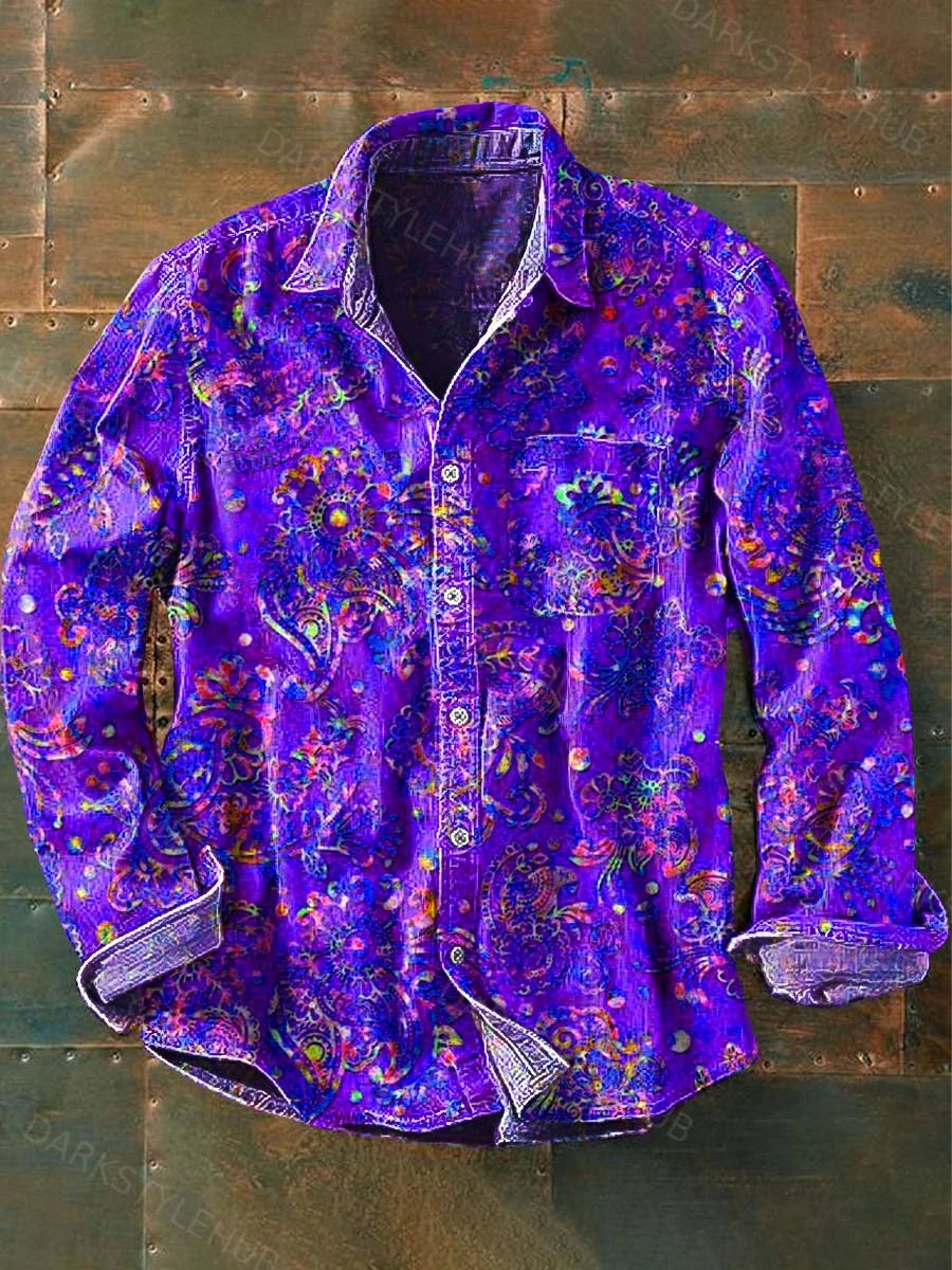 Men's Vintage Western Print Casual Long Sleeve Shirt