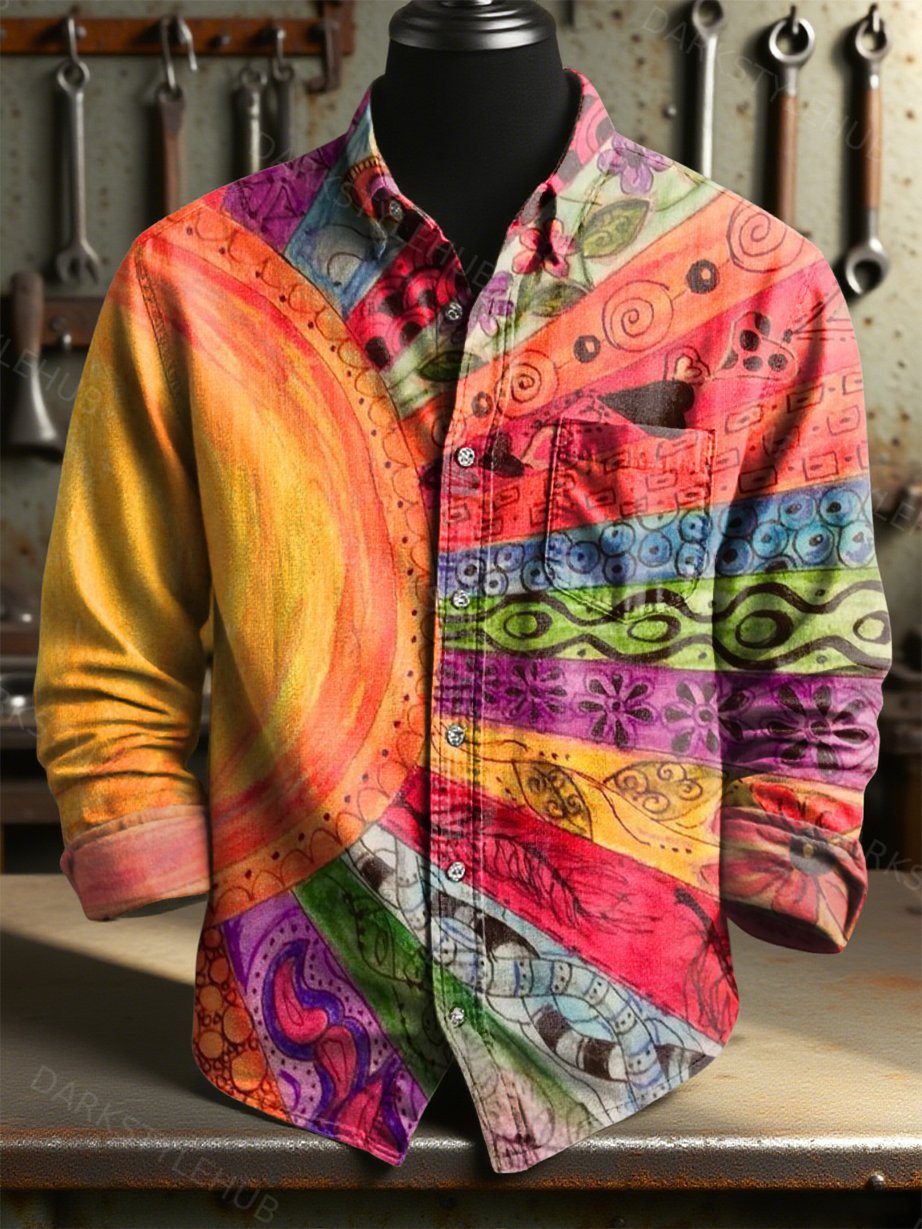 Vintage Sunrise Art Print 100% Cotton Long Sleeve Shirt