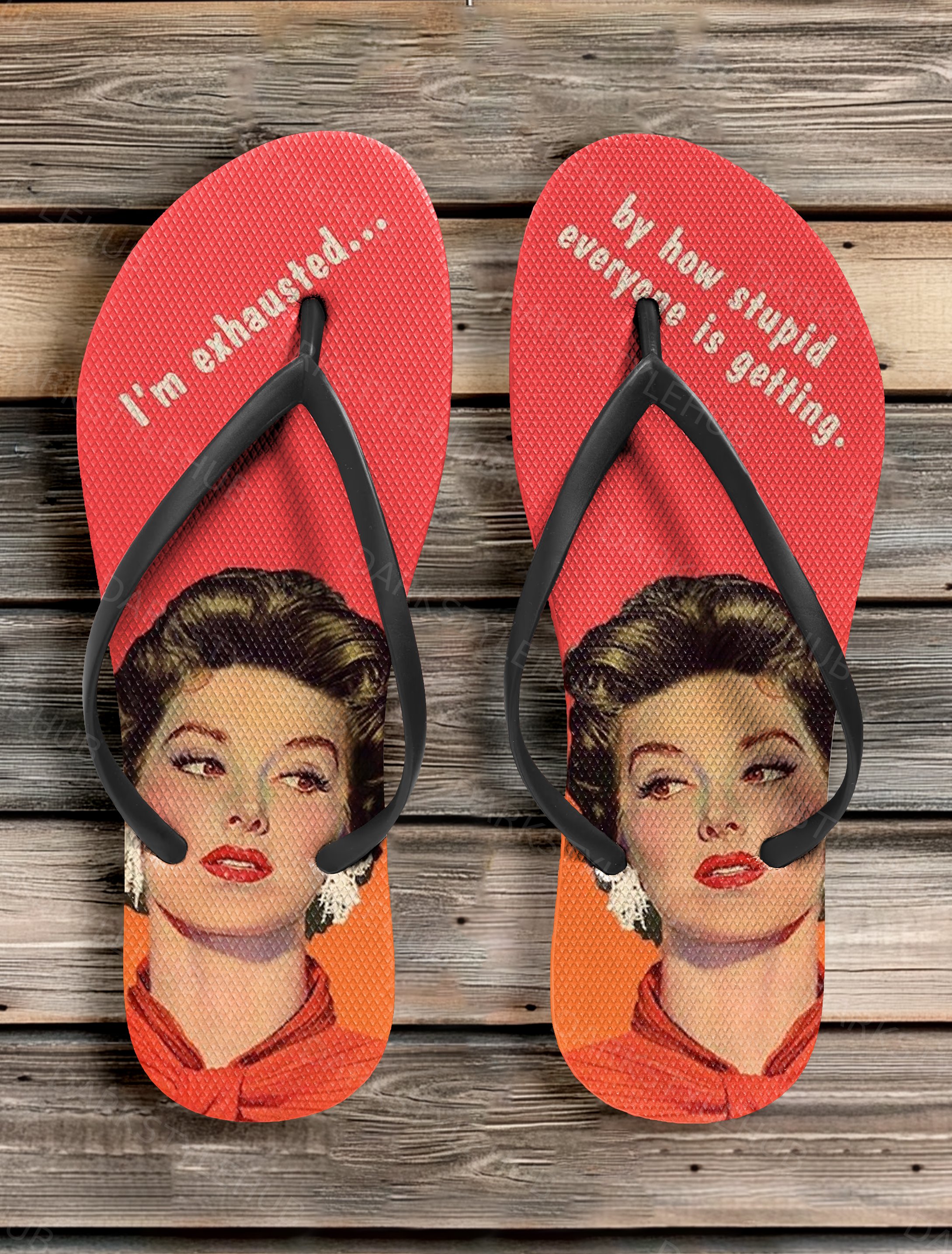 Exhausted By How Stupid Everyone Is Funny Art Print Flip-Flop
