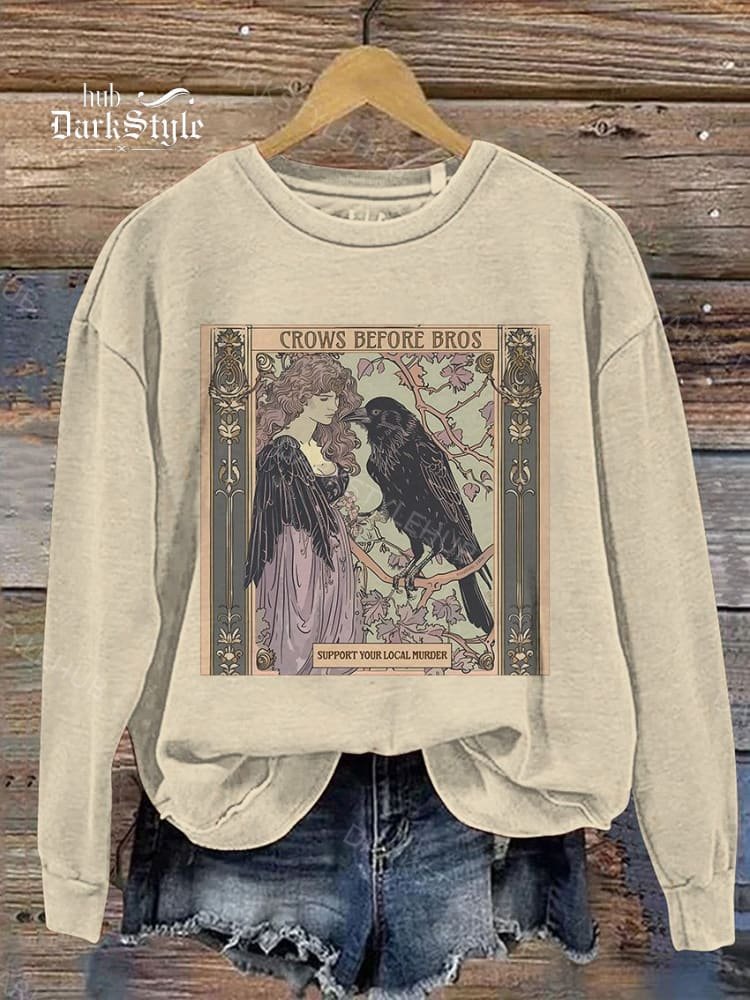 Crows Before Bros Casual Print Sweatshirt