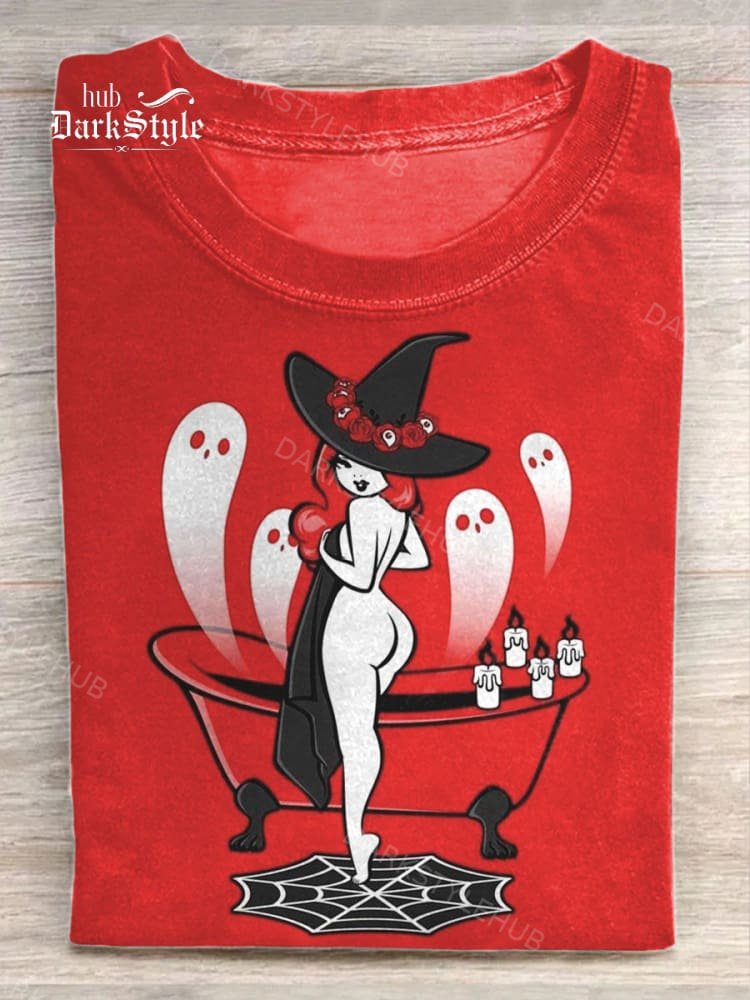 Unisex Halloween Funny Witch Art Illustration Printed Casual Cotton Round Neck T-Shirt