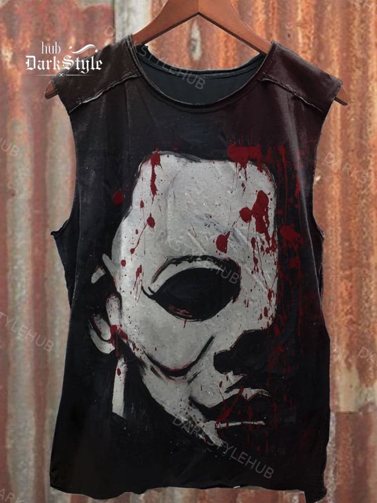 Unisex Retro Black Half Face Bloody Print 100% cotton Tank Top