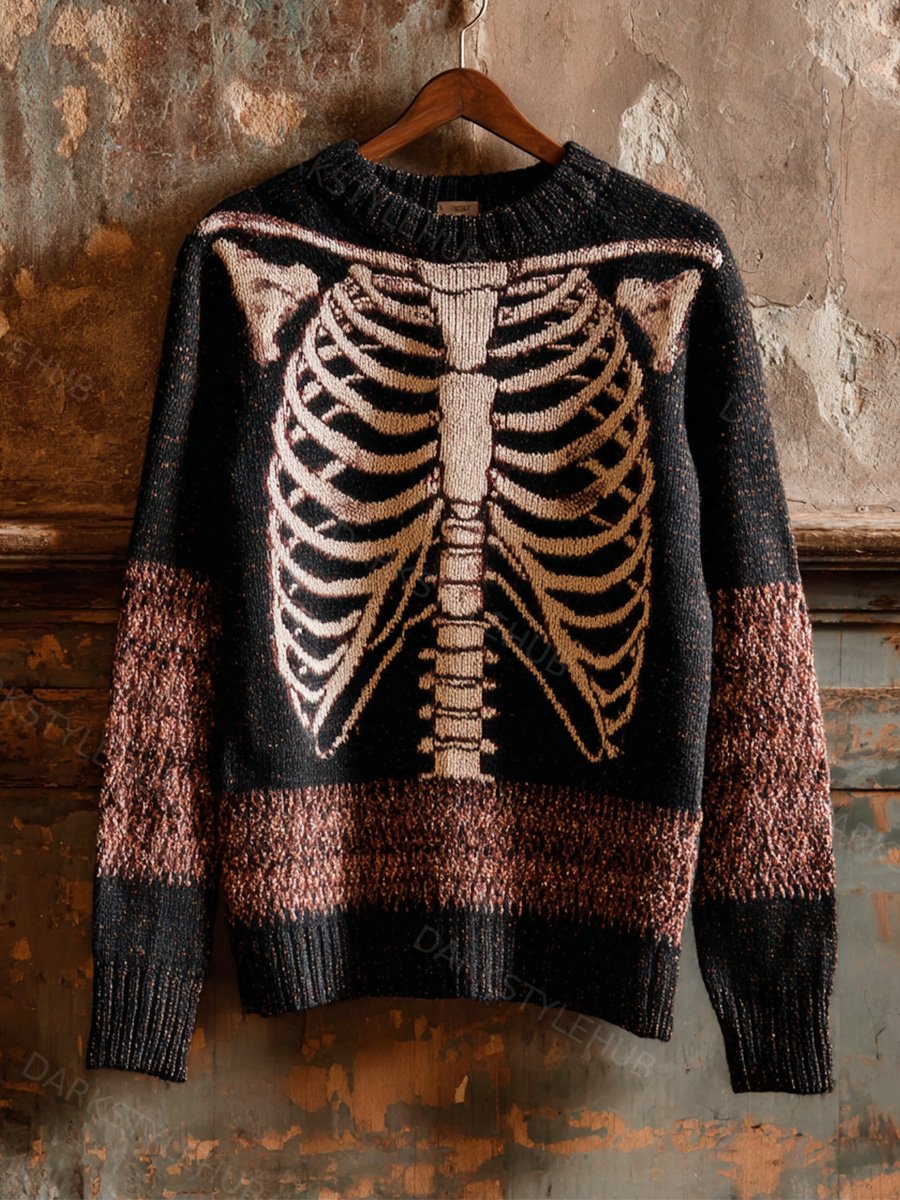 Halloween Retro Horror Skull Print Knit Pullover Sweater