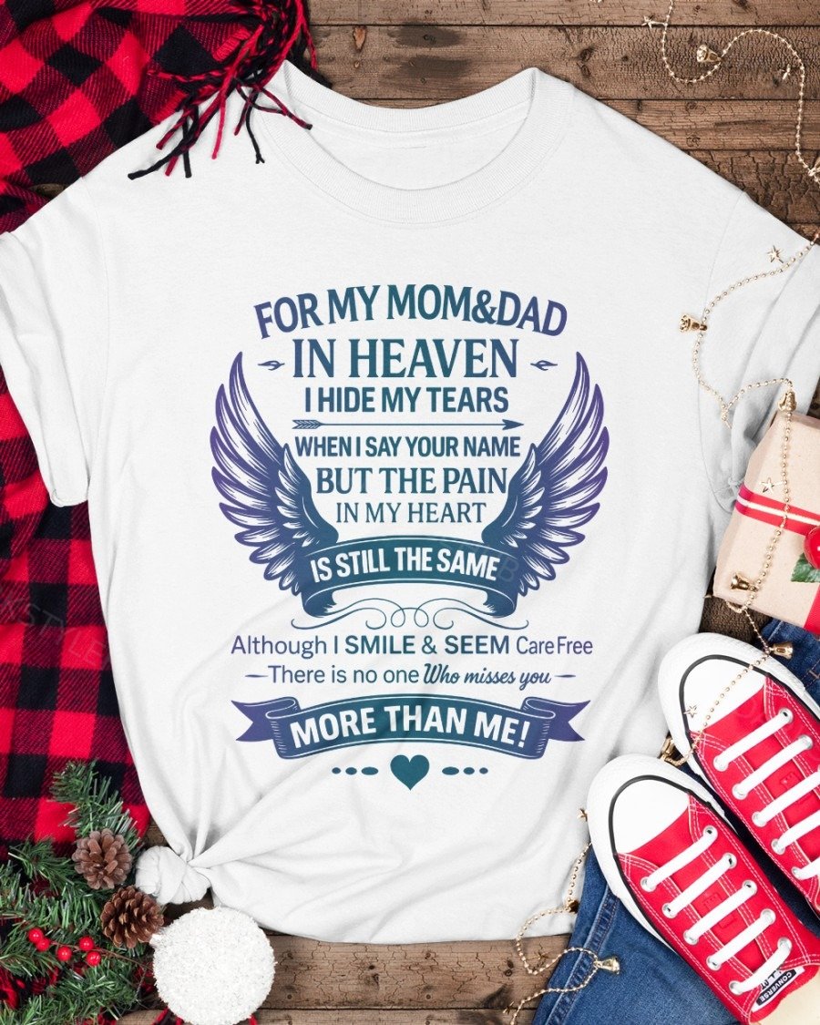 For my Mom and Dad in Heaven, I hide my tears Print Casual T-shirt