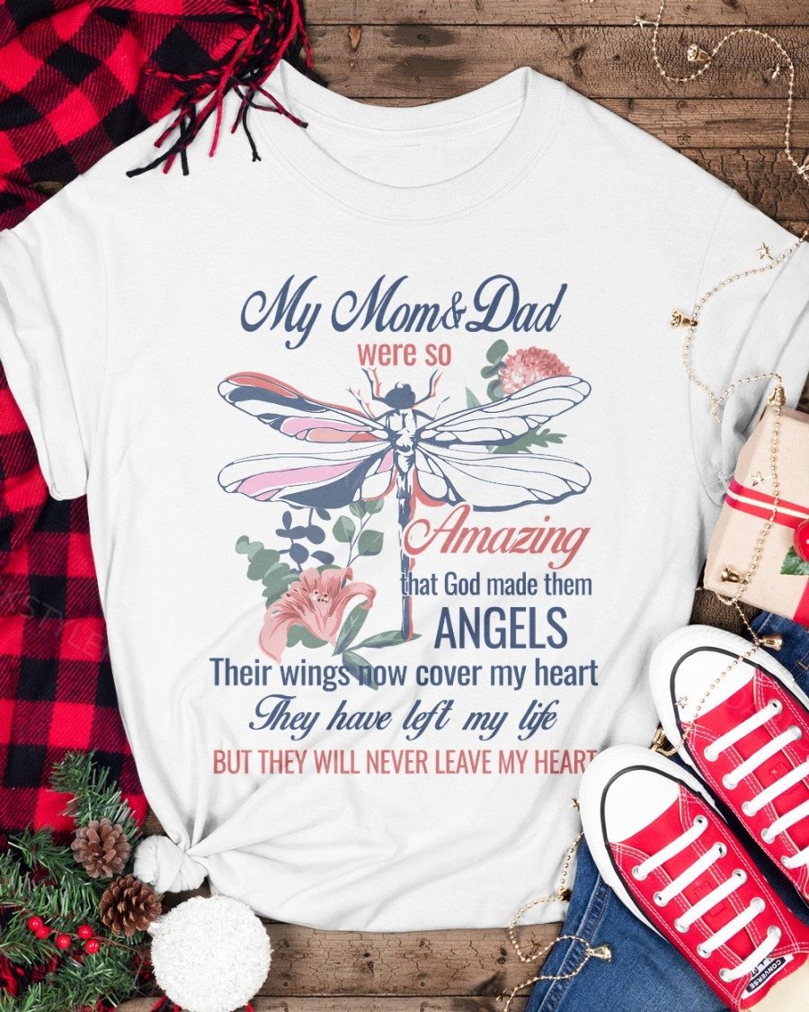My mom and dad were so amazing that God made them angels Print Casual T-shirt