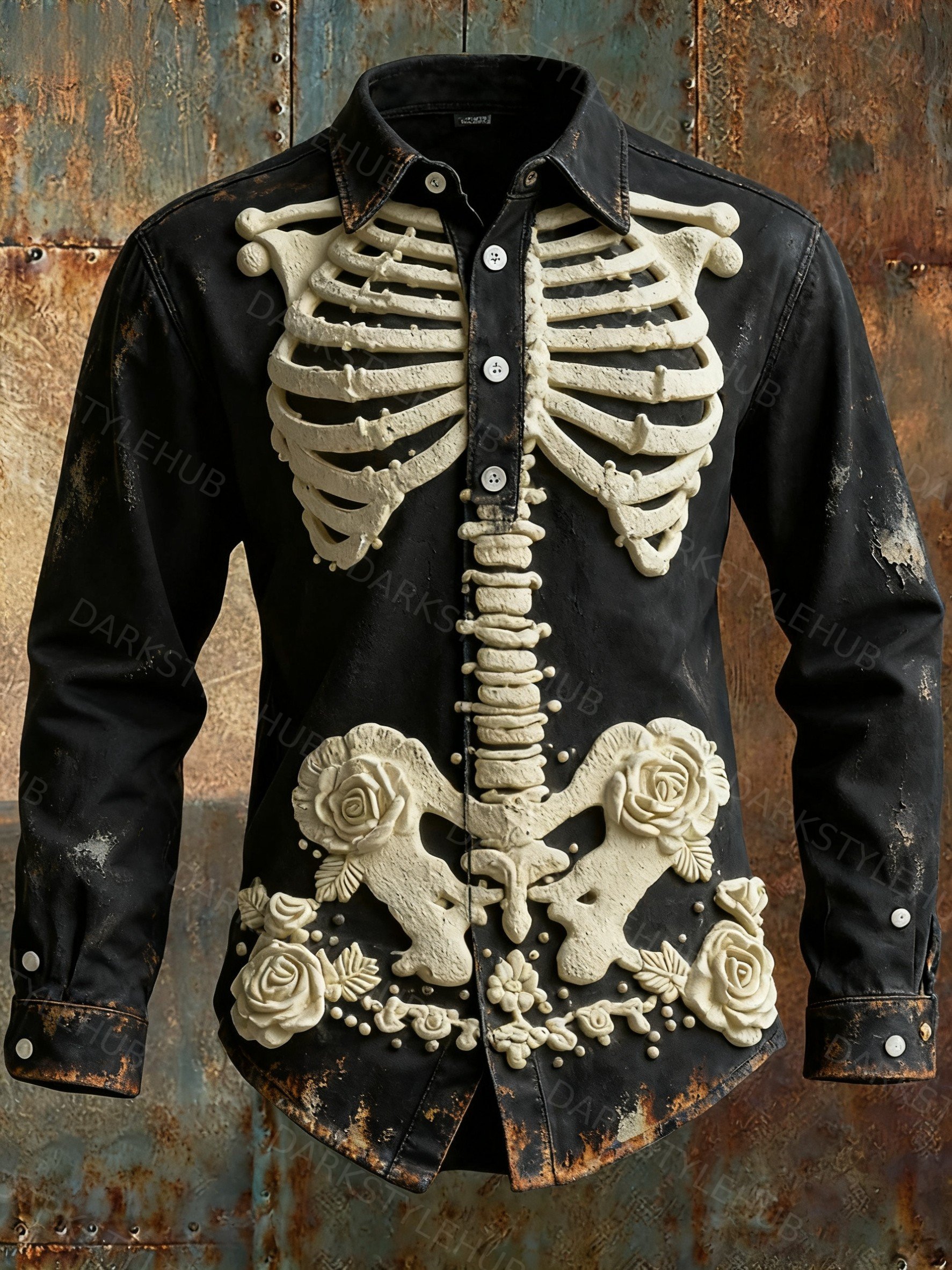 Men's Retro Punk Halloween Skull Floral Skeleton Abstract Print Casual Long Sleeve Shirt