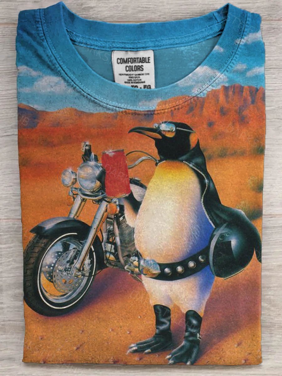 Funny Penguin Motorcycle Print Casual Short Sleeve T-Shirt