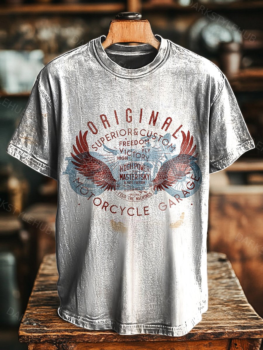 Unisex Vintage Aged Motorcycle Print Casual Loose T-Shirt