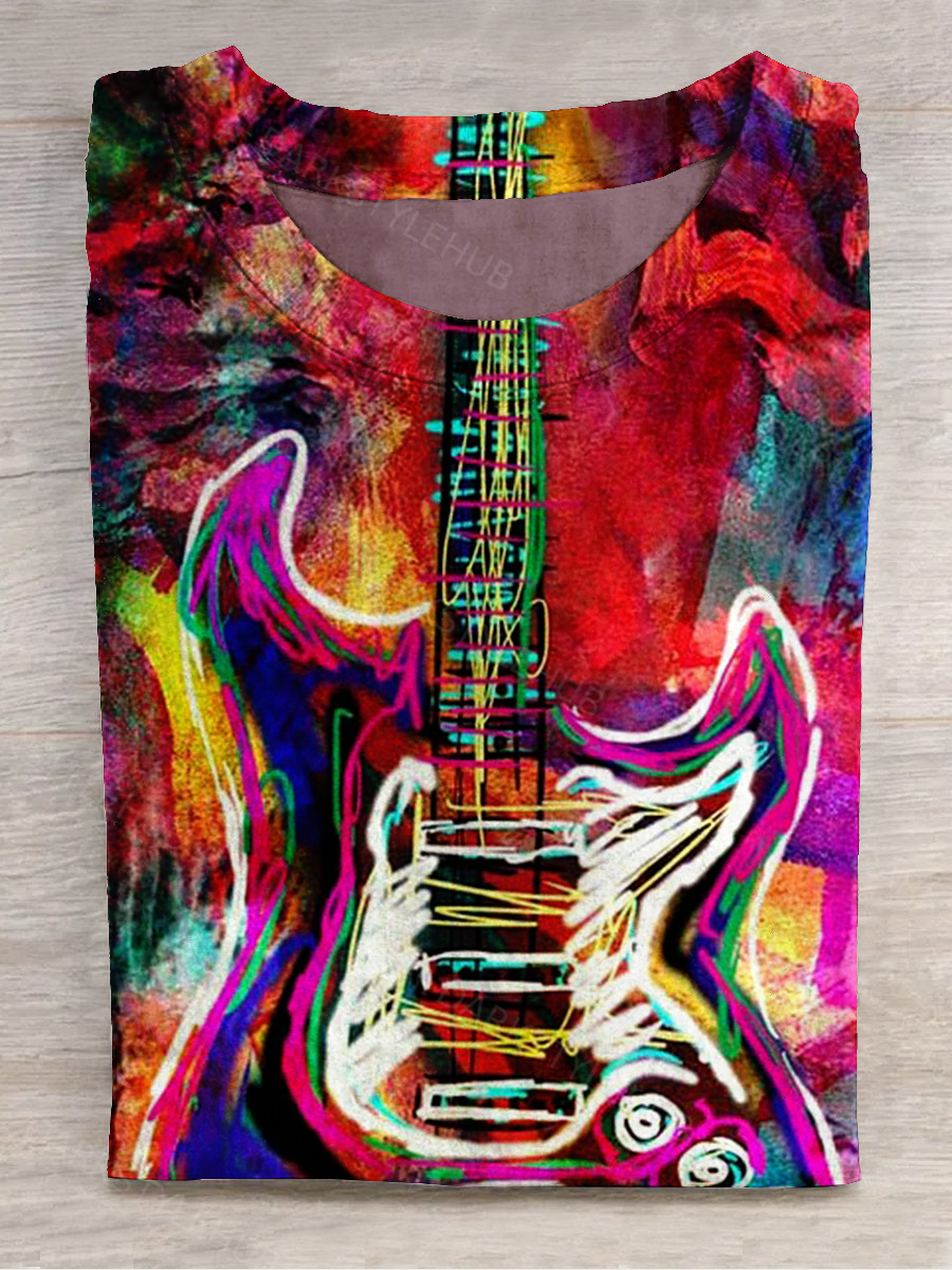 Rock Band Art Print Round Neck Short Sleeve Casual T-Shirt