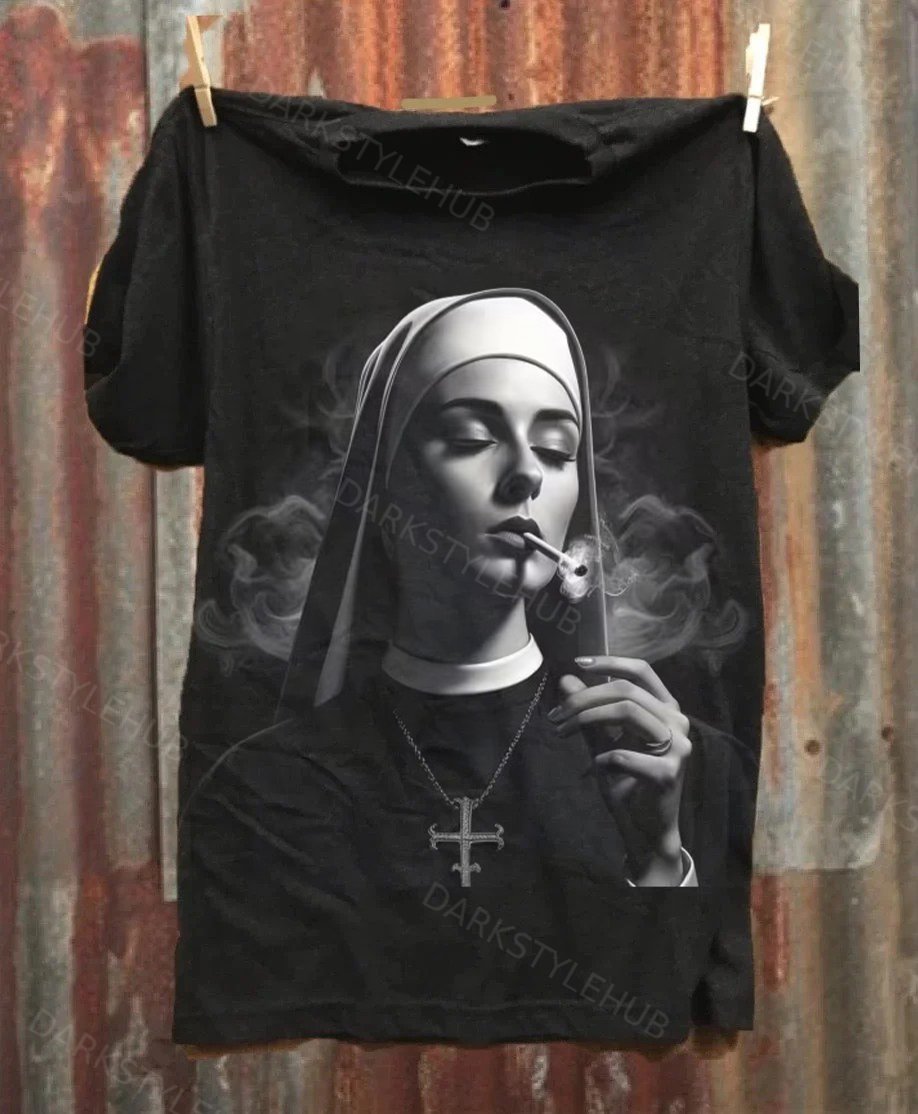Smoking Nun Art Print Casual Cotton Tank Top