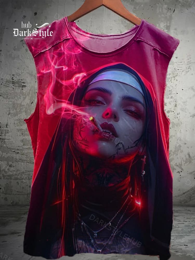 smoking nun illustration Print Unisex Casual Tank Top