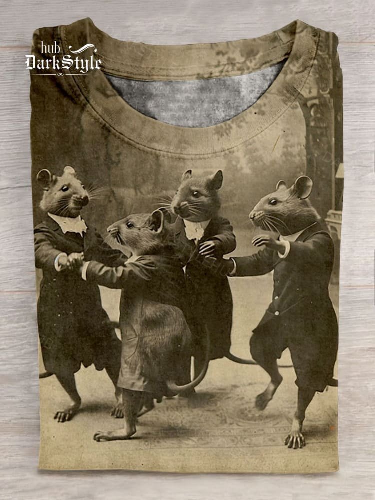 Mouse Dancing Vintage Art Print Casaul Short Sleeve T-shirt