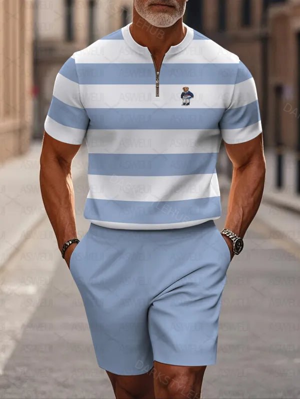 This men's casual two-piece set is the perfect combination of comfort and style, designed for the warmer seasons of spring and summer. Made from a high-quality blend of 100% cotton and polyester, the fabric ensures a soft feel while being breathable and durable for all-day wear. Featuring a bold geometric print, this set offers a unique, modern look that stands out in any casual or sporty setting. The round-neck design and short sleeves provide a relaxed and comfortable fit, ideal for various occasions like casual outings, sports, or weekend get-togethers.