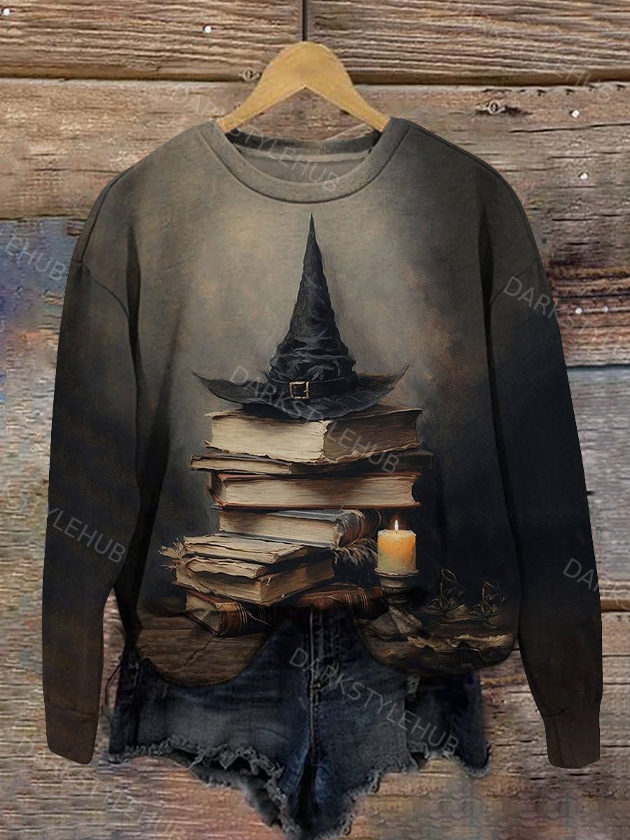Magic Book Witch Art Print Unisex Crew Neck Long Sleeve Casual Sweatshirt