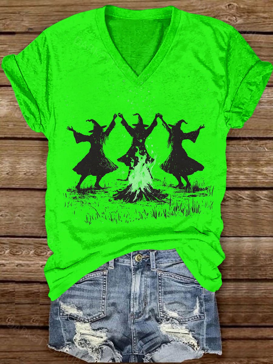 Witch Bonfire Ceremony Dance Art Print Unisex V-neck Short Sleeve Casual T-shirt