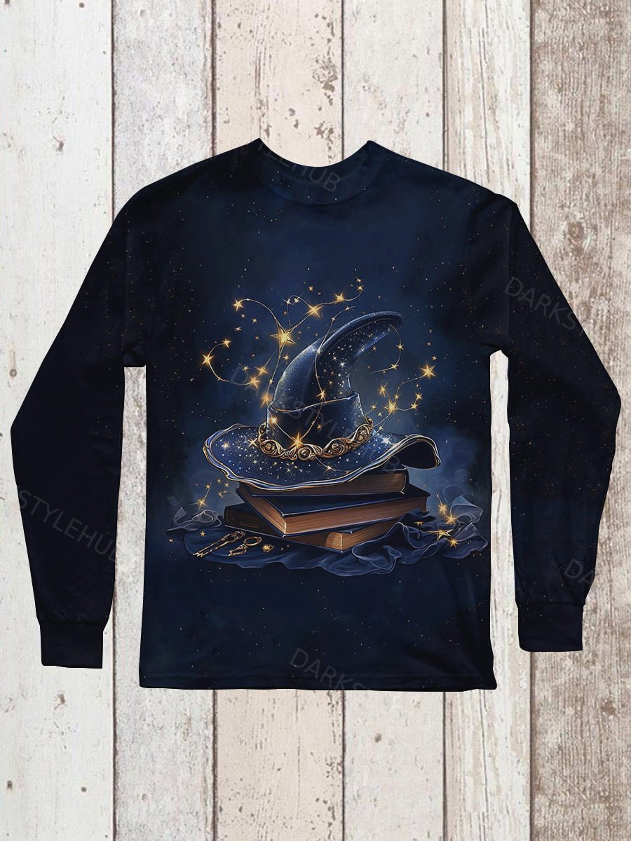 Witch Magic Book Art Print Unisex Crew Neck Long Sleeve Casual T-Shirt