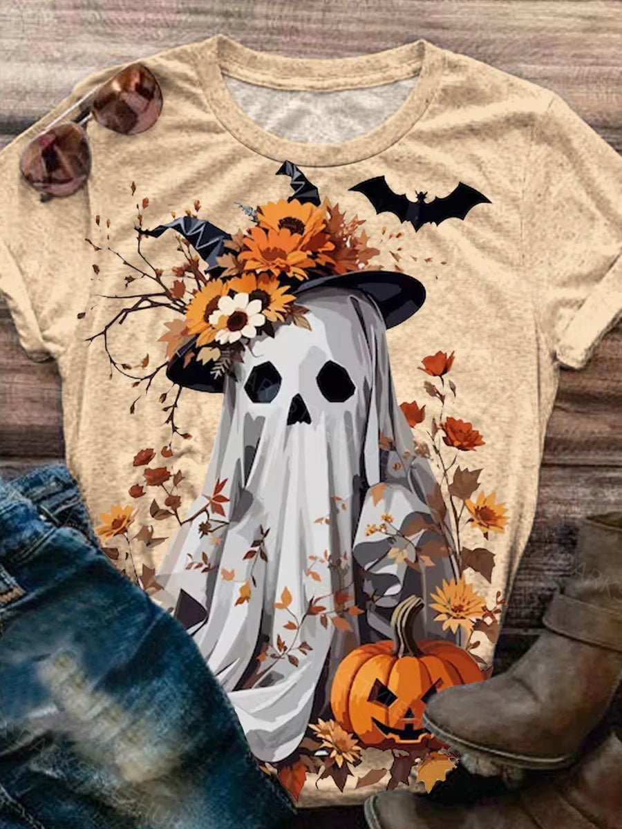 Women's Halloween Witch Hat Ghost Print Casual T-Shirt
