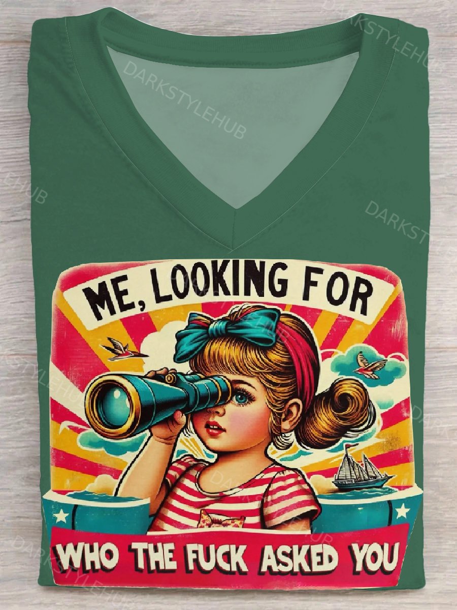 Women's Vintage Print Casaul Short Sleeve V-Neck T-shirt