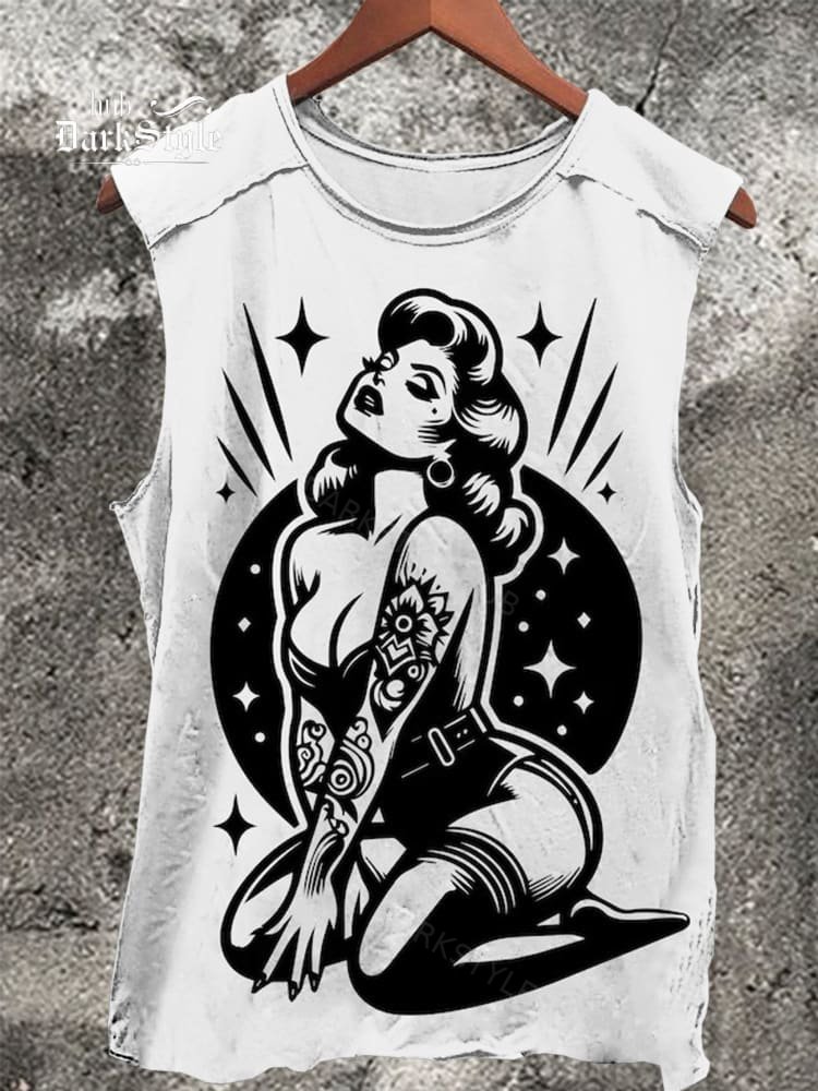 Tattoos Pretty Women Vintage Print 100% Cotton Casual Tank Top