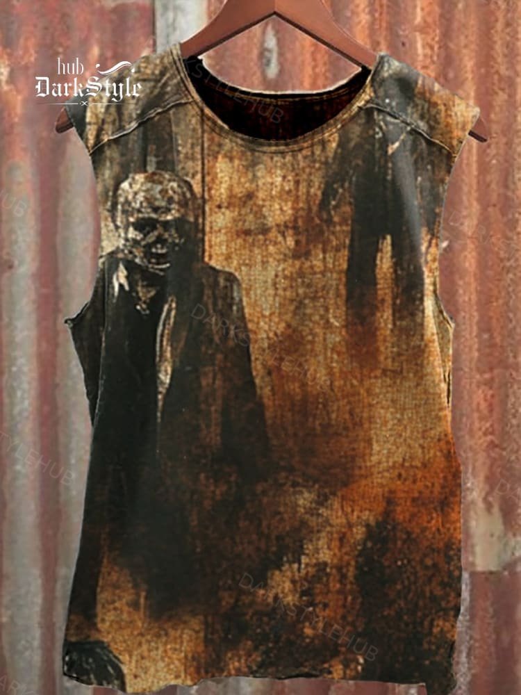 Vintage Zombie Print 100% Cotton Casual Tank Top