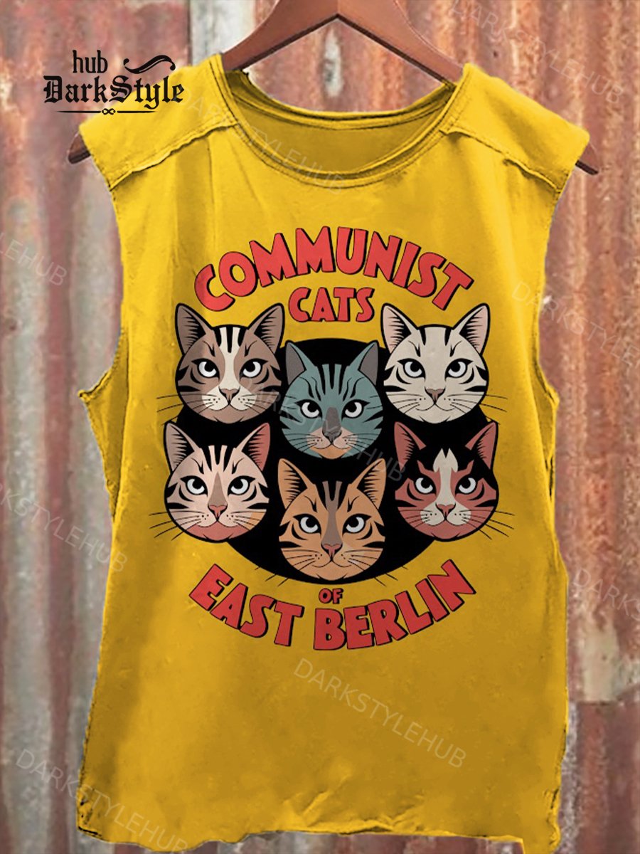 Communist Cats Of East Berlin Print 100% Cotton Casual Tank Top
