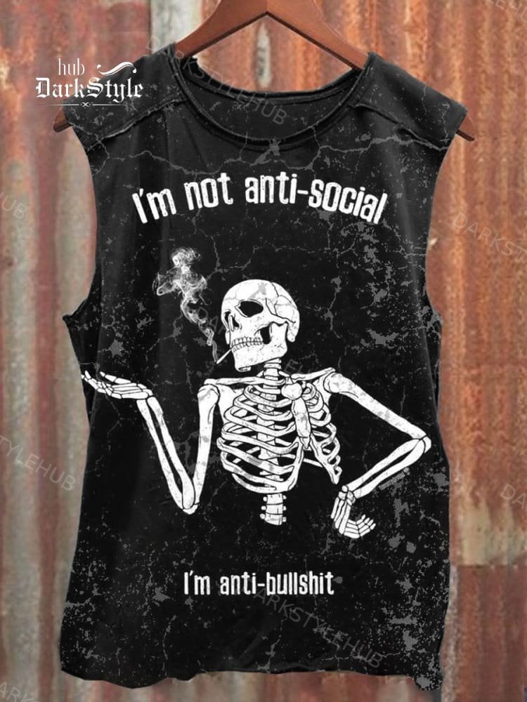 I'm Not Anti- social I‘m Anti -Bullshit Skull Art Print Casual Tank Top