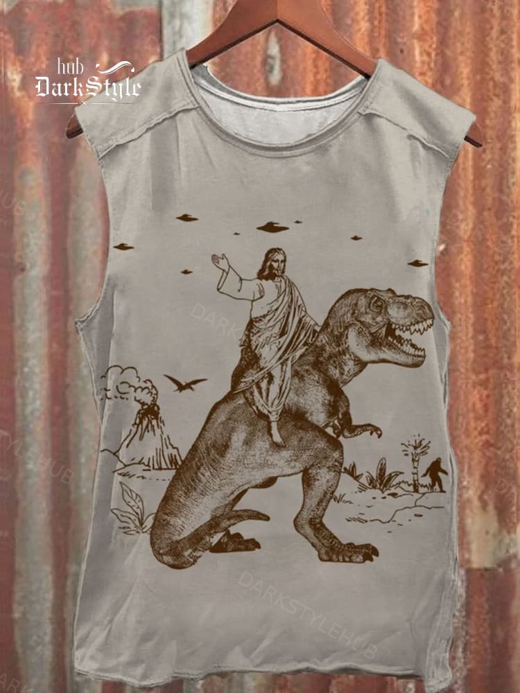 Jesus Riding Dinosaur Graphic Unisex Classic Tank Top