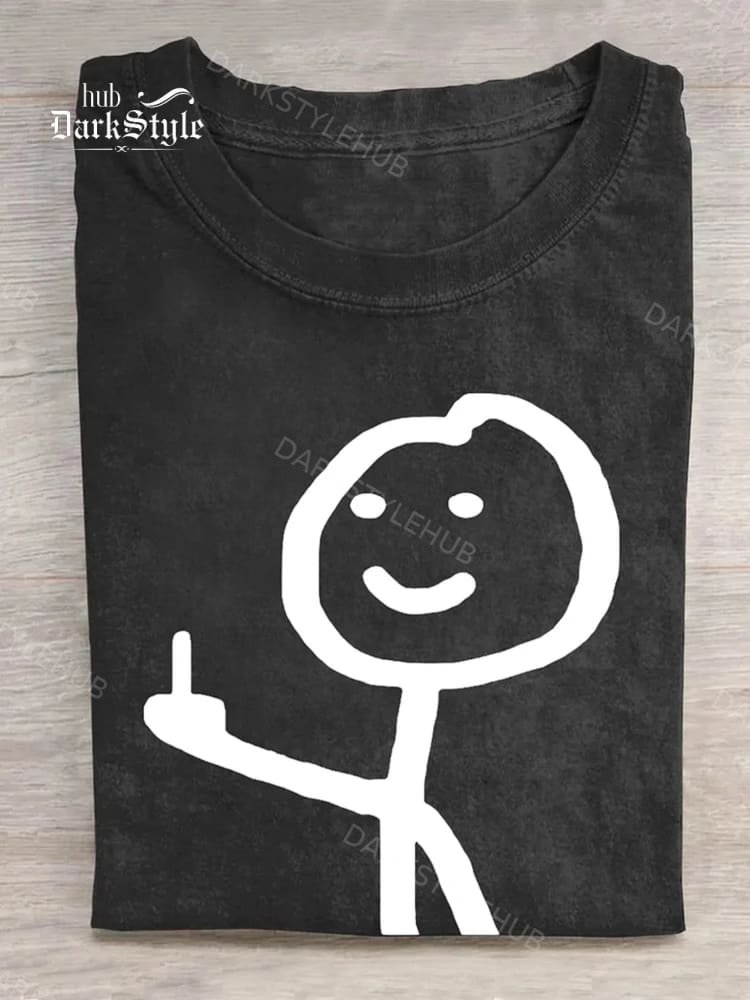 Line Man Middle Finger Gesture Print T-shirt