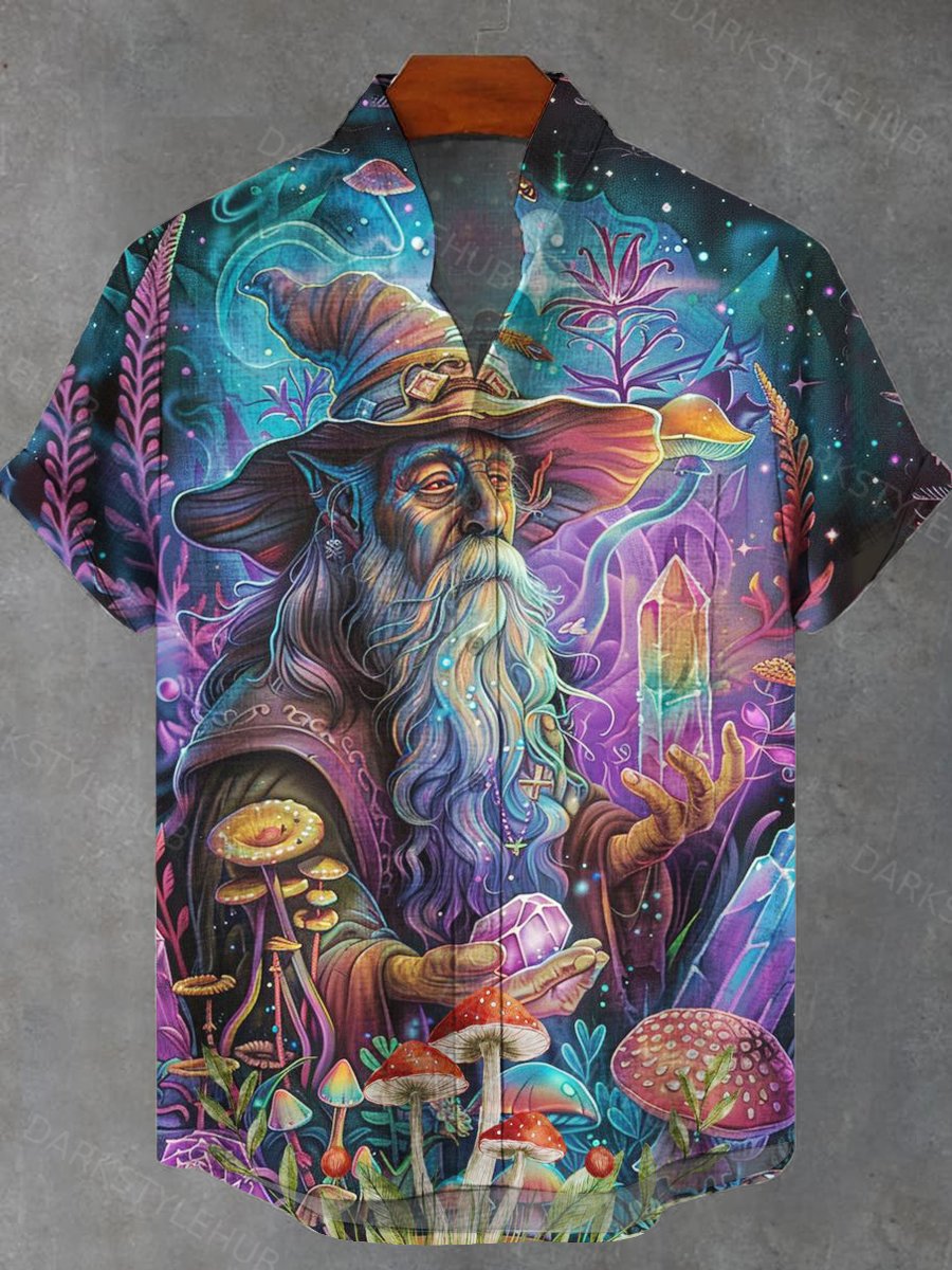 Male Magician Mushroom Print Casual Shirt