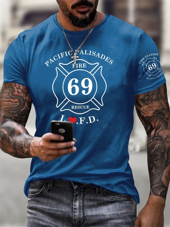 Men's Retro L❤️FD Fire Station 69 Pacific Palisades Print T-Shirt