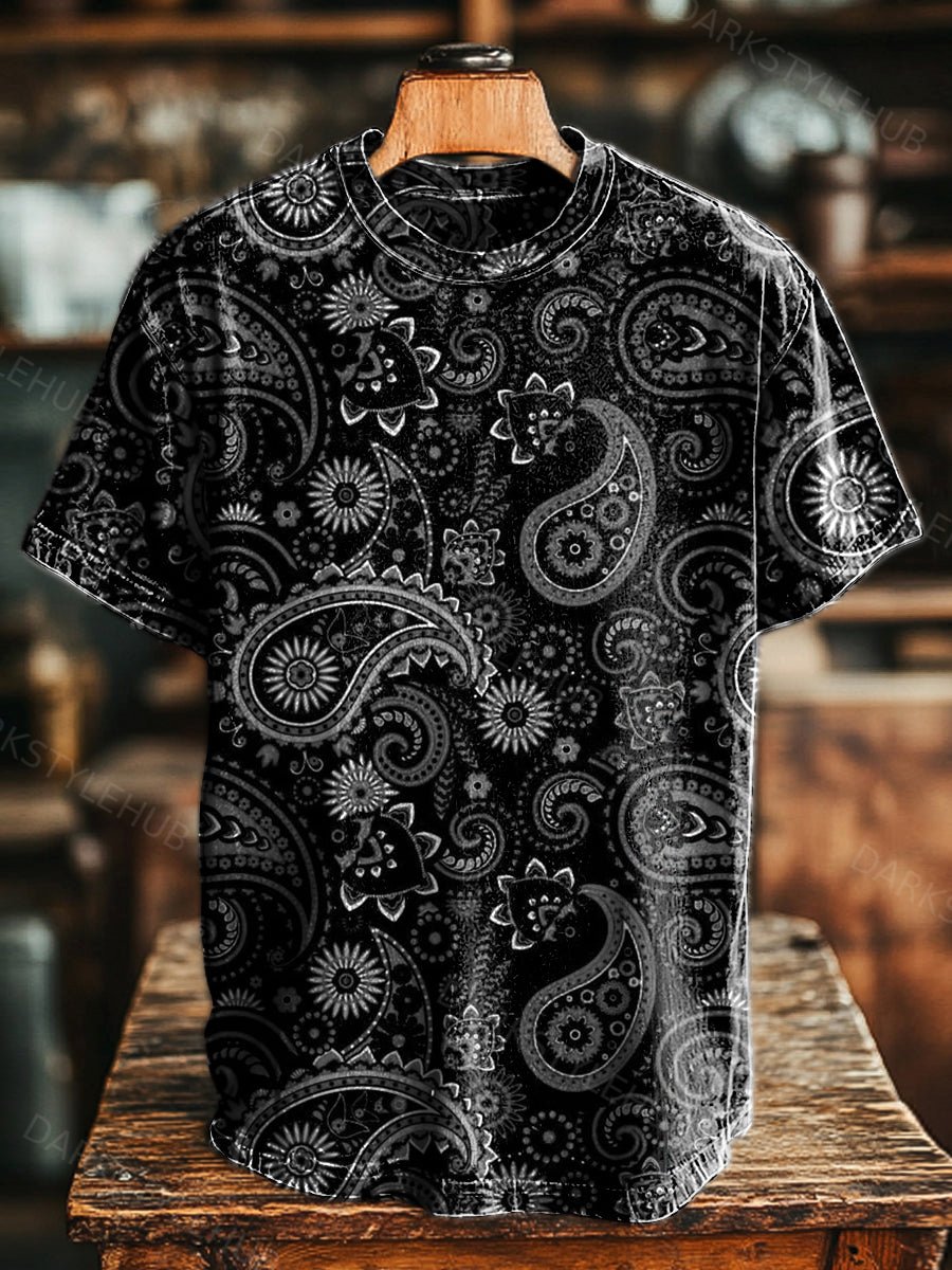 Unisex Vintage Paisley Print Casual Short Sleeve T-Shirt