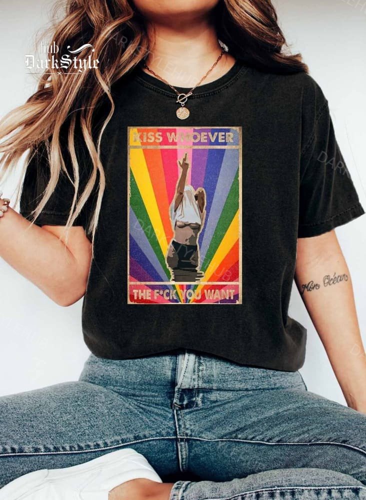 Pride Day Rainbow Color Element Kiss Whoever The Fuck You Want Print Casual T-shirt