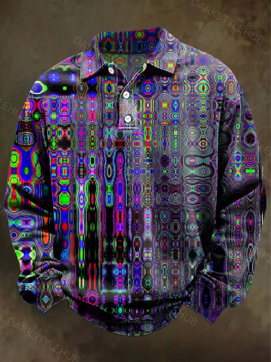 Psychedelic Irregular Geometric Print Casual Long-Sleeve Polo Shirt