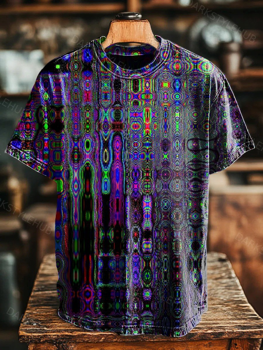 Psychedelic Irregular Geometric Print Casual Long-Sleeve Polo Shirt