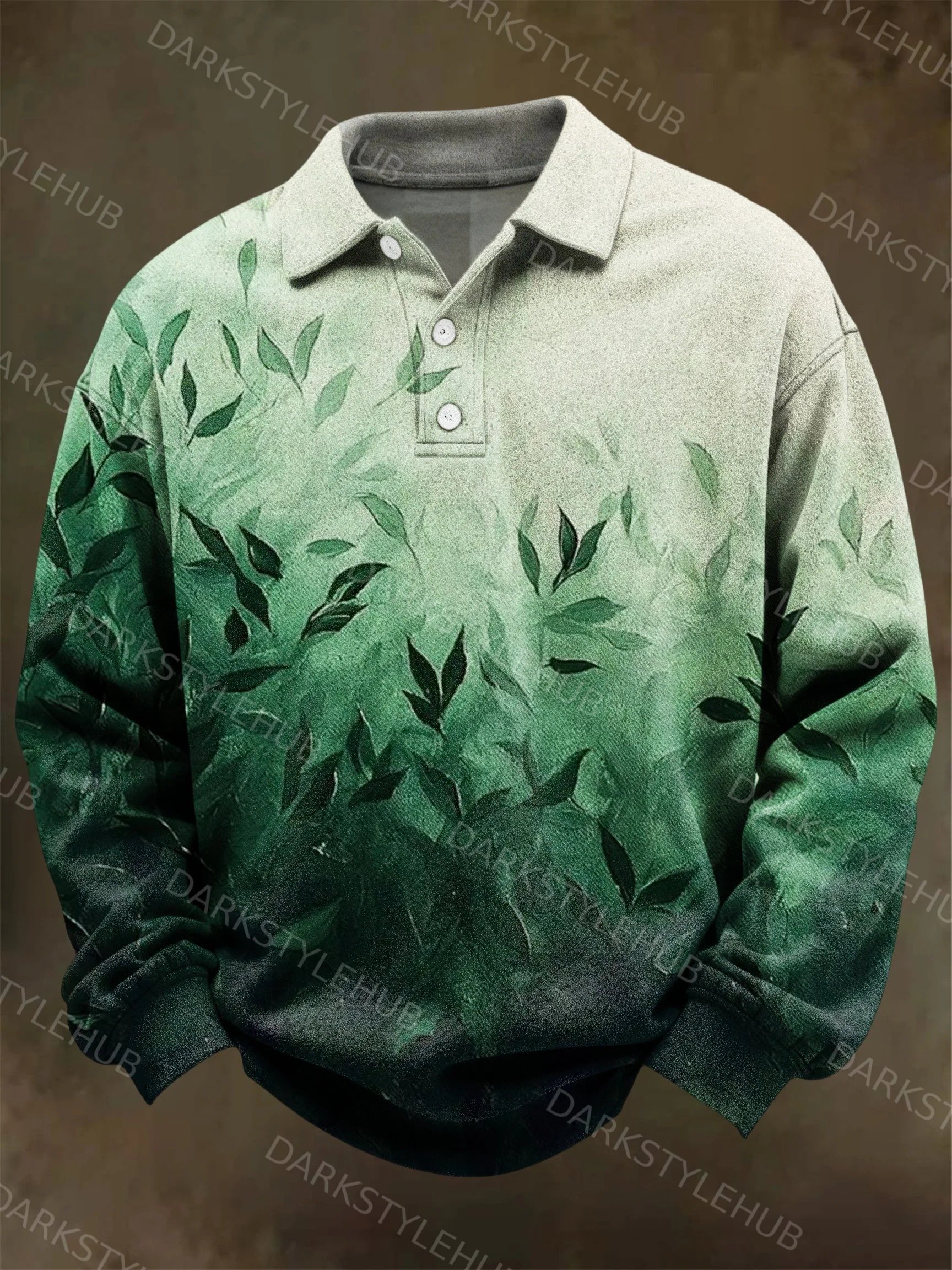 Retro Bamboo Leaves Art Print Knit Pullover Hooded Sweater