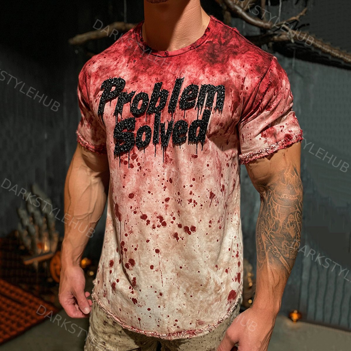 Retro Bloody "problem Solved" Art Pattern Print Cotton Graphic T-shirt