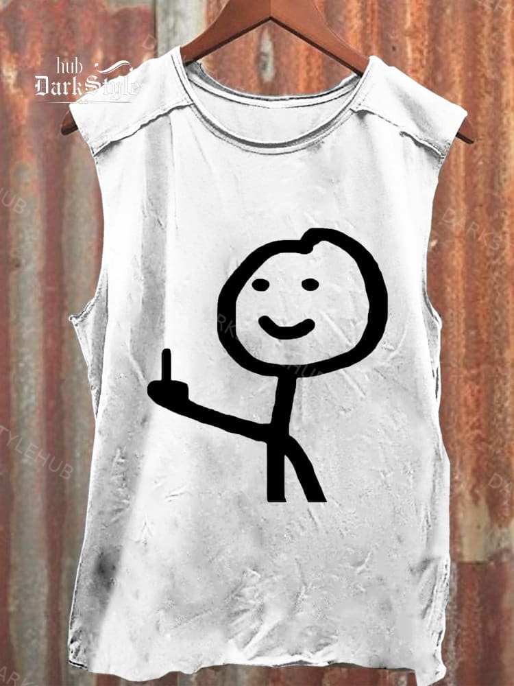 Stickman Giving Middle Finge Print 100% Cotton Casual Tank Top