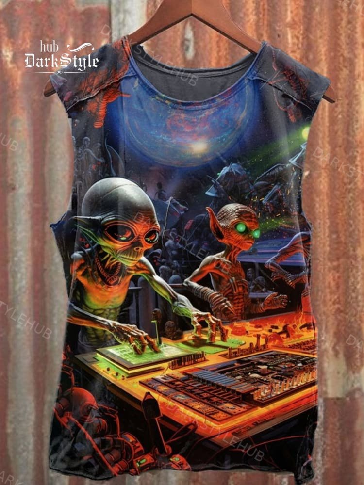 Unisex Alien Party Art Illustration Printed Casual Tank Top