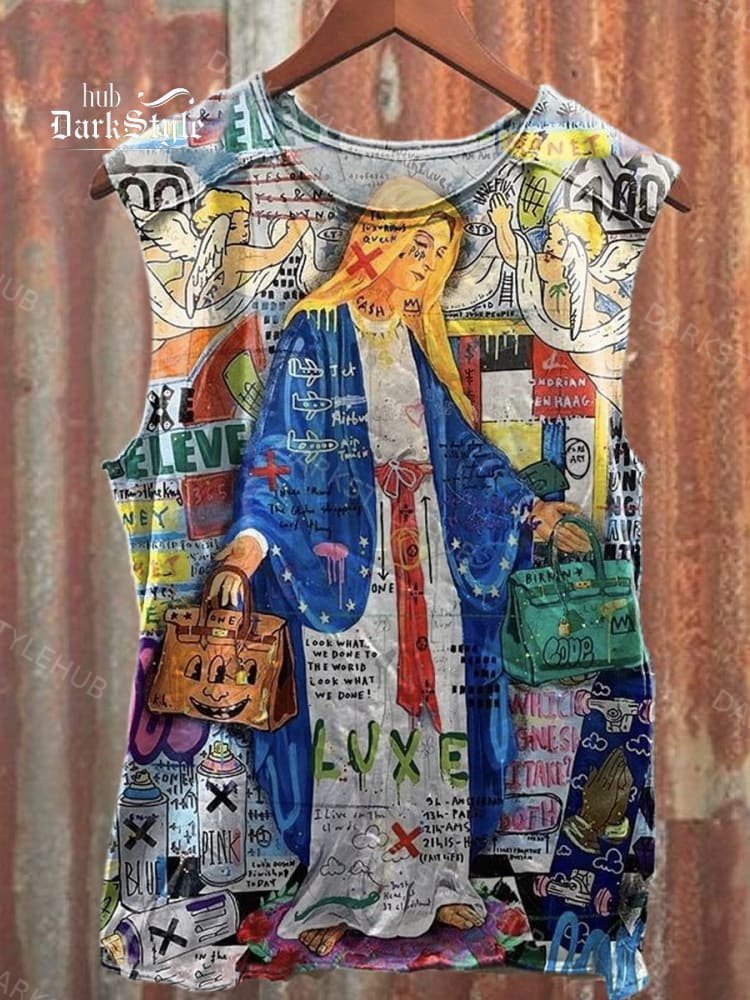 Unisex Christ Mary Graffiti Art Print Casual Tank Top