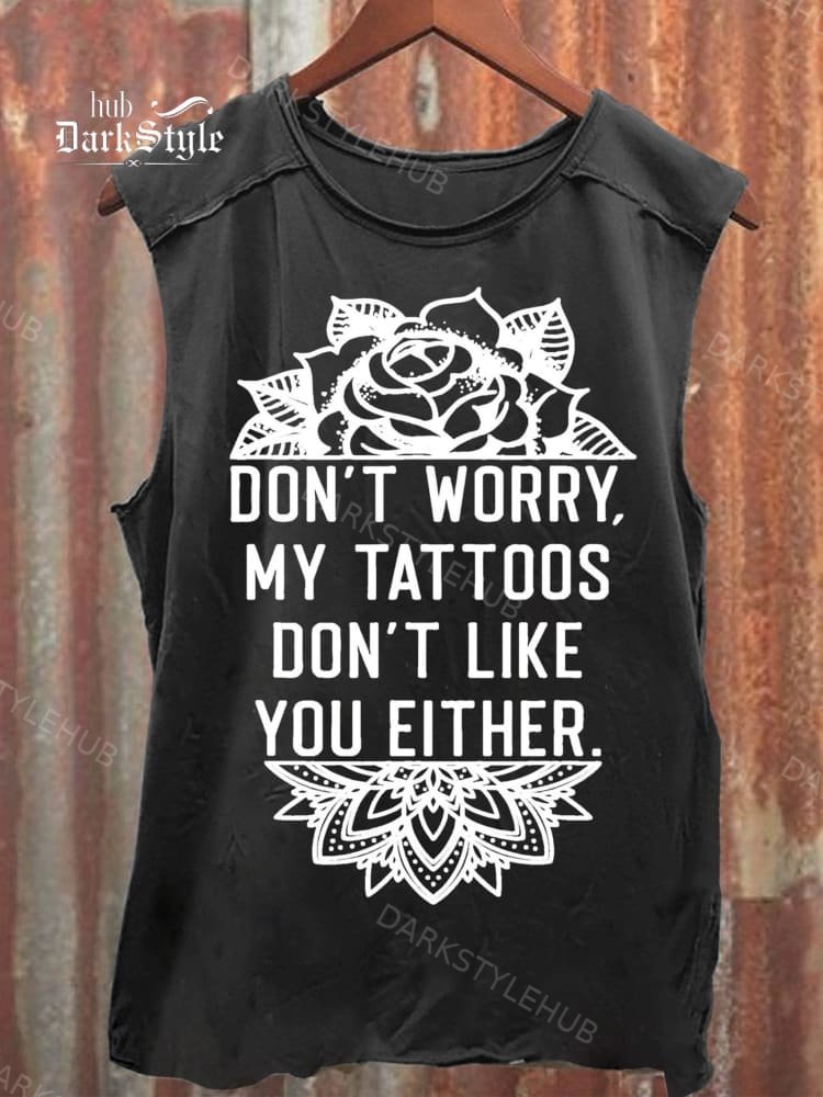 Unisex Don't Worry My Tattoos Don't Like You Either Print Casual Tank Top