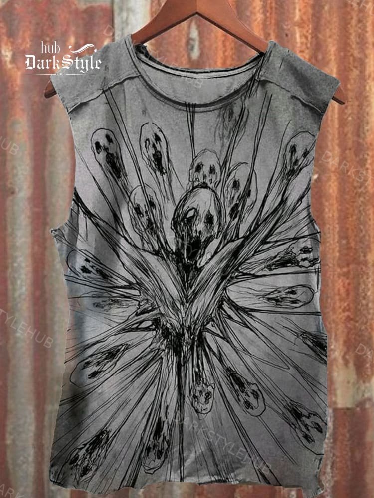 Unisex Evil Skeleton Art Print Tank Top