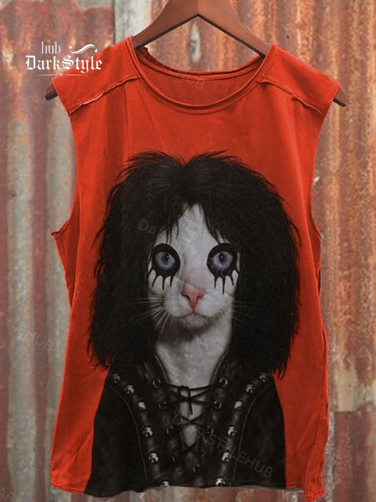 Unisex Funny Cat Illustration Printed Casual Tank Top
