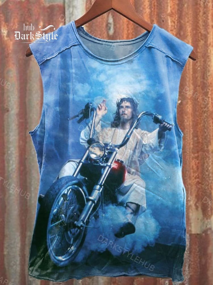 Unisex Funny Christ Jesus Riding Printed Casual Tank Top