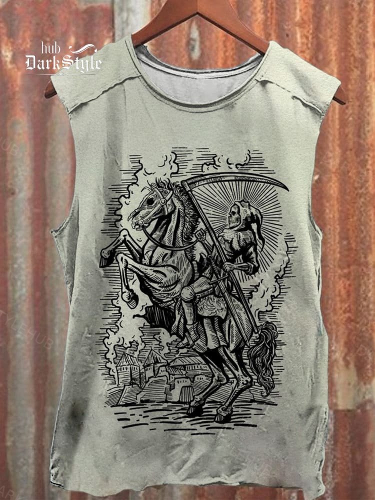 Unisex Grim Reaper Riding Skeleton Print Casual Tank Top