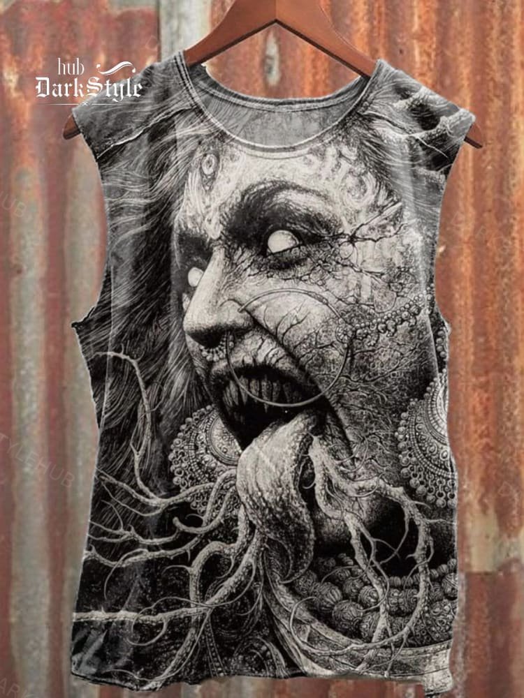 Unisex Retro Horror Art Illustration Print Casual Tank Top