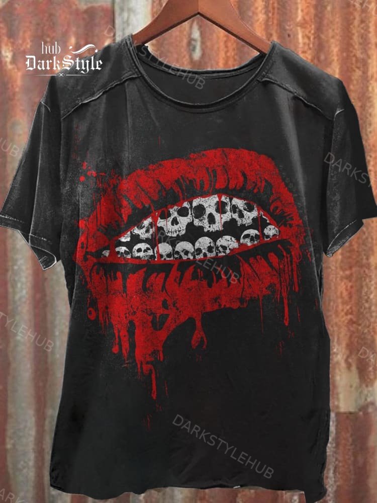 Unisex Retro Mouthed Skull Print T-shirt