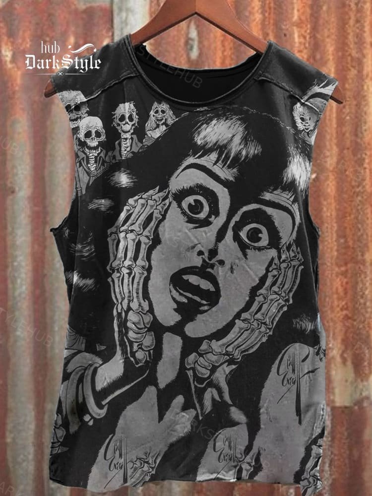 Unisex Retro Punk Scared Face Skeleton Print Casual Tank Top