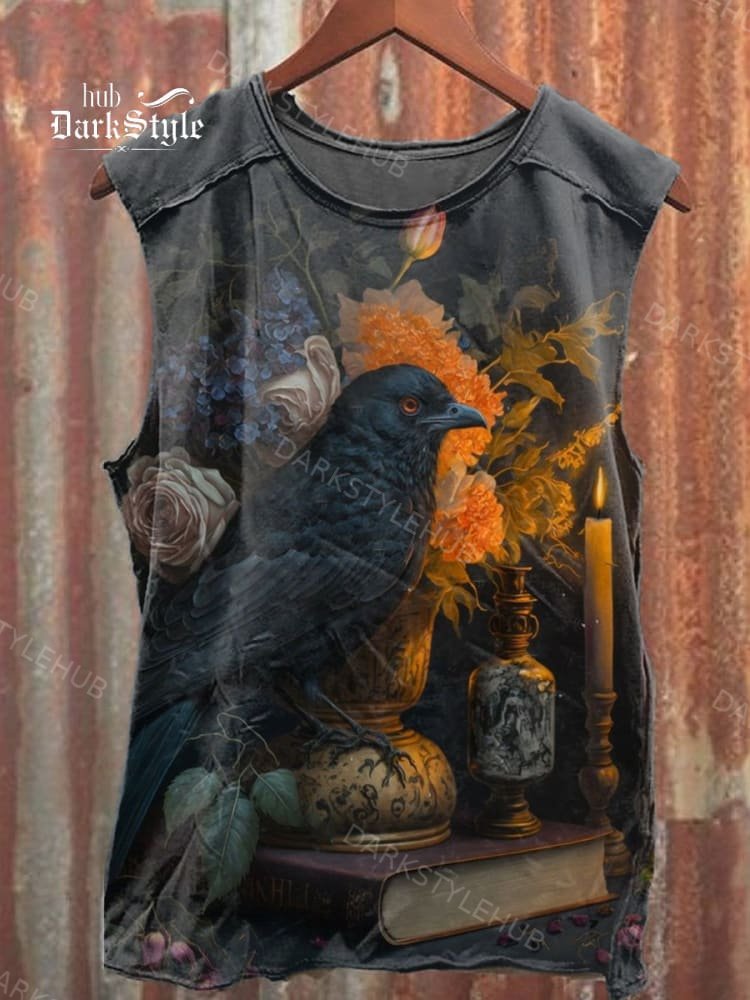 Unisex Retro Raven Art Illustration Printed Casual Tank Top